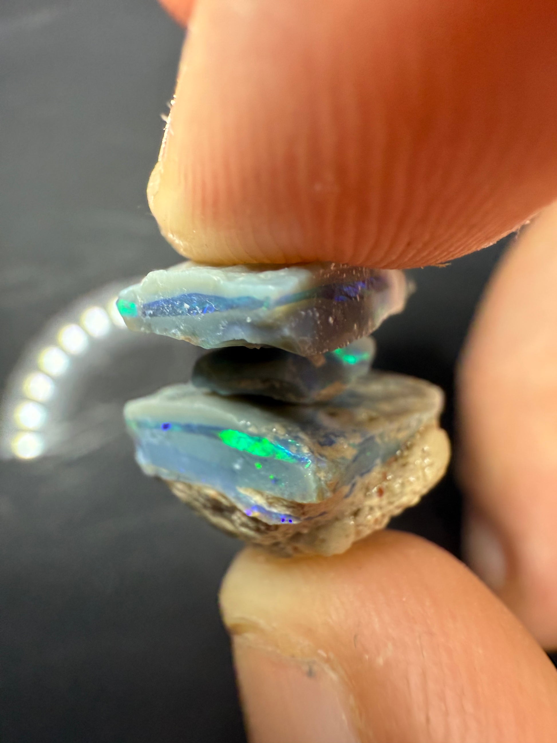 These are some amazing little stones that are ready to be uncovered. They are on the smaller size but size doesn't matter when the blues and greens are punching out from the side of the skin.